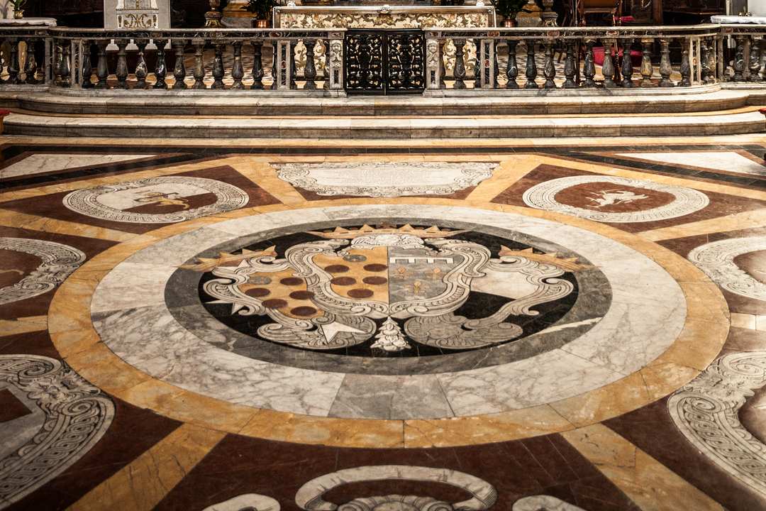 The famous Collegiata di Santa Maria in Provenzano (this is the complete name) has on the main altar a terracotta bust of the Virgin venerated for a long list of miracles that happened in the second half of the sixteenth century. The first one was about a Spanish soldier who, for a blasphemous joke, pointed his harquebus against the sacred image, shattering the low part of the bust and sparing only the face and the shoulders. But the weapon, instead of shooting imploded and killed the soldier. The Palio of the 2nd of July is dedicated to the Virgin of Provenzano: immediately after the victory, the Contrada members go to this Church with the drappellone (the big drape, which is the Palio itself) received as a prize for singing the traditional Te Deum of thanksgiving to the Virgin. The construction of the church began in 1595 on the project of the Certosino monk Damiano Schifardini, and was directed by Flaminio del Turco. The architectural aspect refers to the prototype of the church of 'Il Gesù' in Rome designed by Vignola and better corresponds to the criteria of the Counter-Reformation.The church was consecrated in 1611.