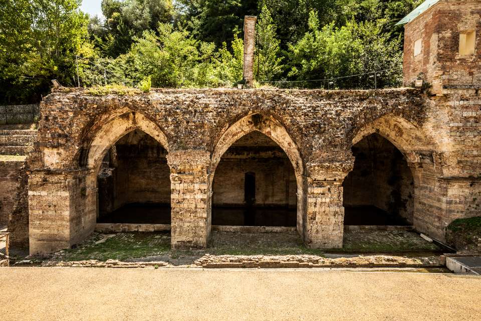 Fonte di Follonica is one of the largest and most beautiful fountains of Siena. It’s first mention dates back to 1226. Around 1270 it was fortified together with Fontebranda and the Fonte di Pescaia. Progressively abandoned over the years, in the fourteenth century the management was entrusted to the friars of the Holy Spirit 1509, then under the dominion of Pandolfo Petrucci, who removed it from public use. Buried for a long time, the fountain has only recently been recovered and restored. It’s name derives from the latin fullones, which means dyers and those who work with wool. Its structure is made up of a facade of three imposing Romanesque arches framed by three Gothic arches. As opposed to most Sienese fountains, the water comes from an independent reservoir which gathers the water directly from the valley where it is located. Until the fifteenth century the fountain was located outside the walls but is now inside following the most recent extension of the city walls.